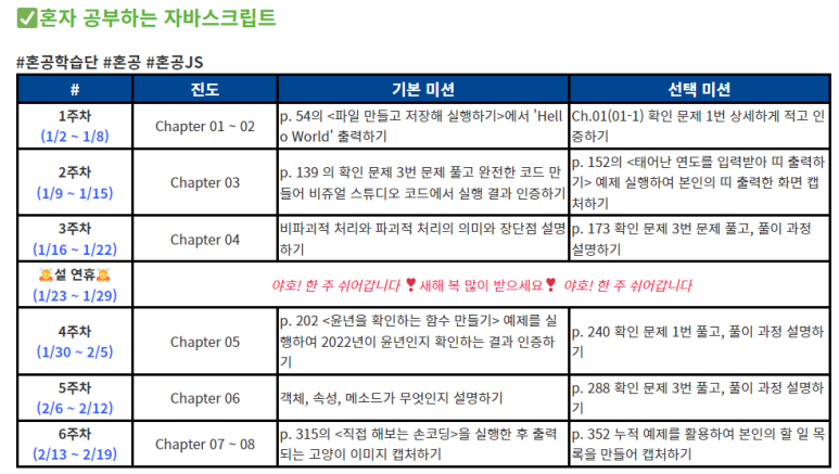 안녕하세요, 벌써 자바스크립트 혼공을 한지 절반이 되었습니다. 정말 시간은 금방 가는 거 같습니다.