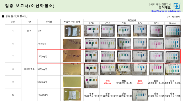 위 사진은 실제 검증 사진인데, 팩테스터 및 수질인증기관 의뢰하여 최종 질소 제거 결과를 확인하였습니다.