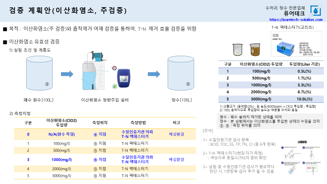 안녕하십니까, 퓨어테크 입니다. 외국계 기업의 의뢰를 받아 이산화염소 유효성 검증을 진행하였습니다.