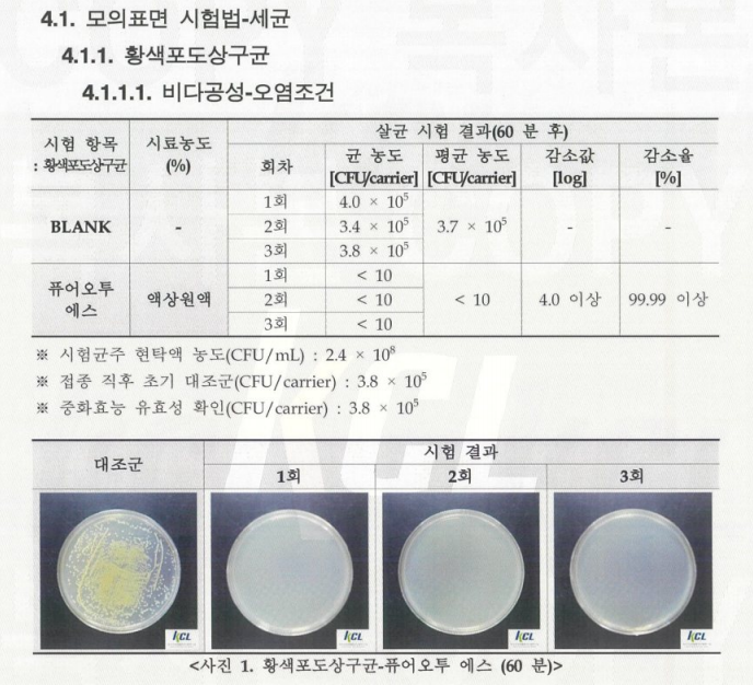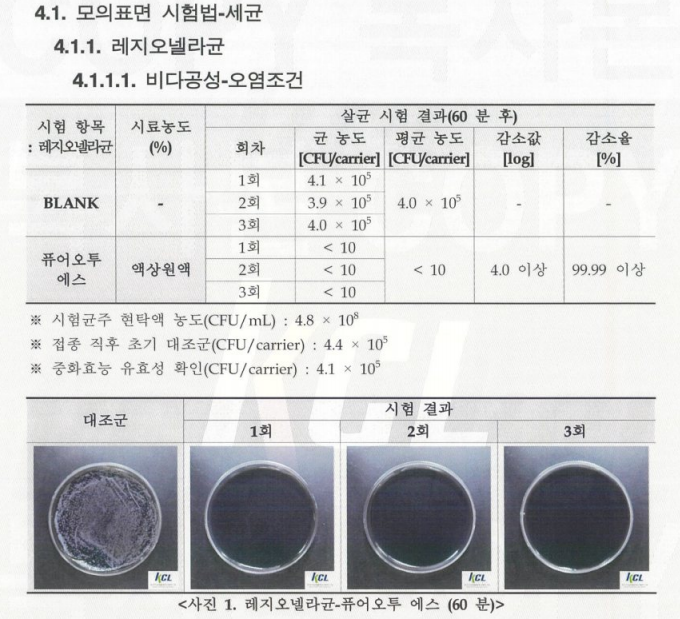 이산화염소 살균검증에 대한 KCL 검증 결과를 소개해드리려고 합니다.