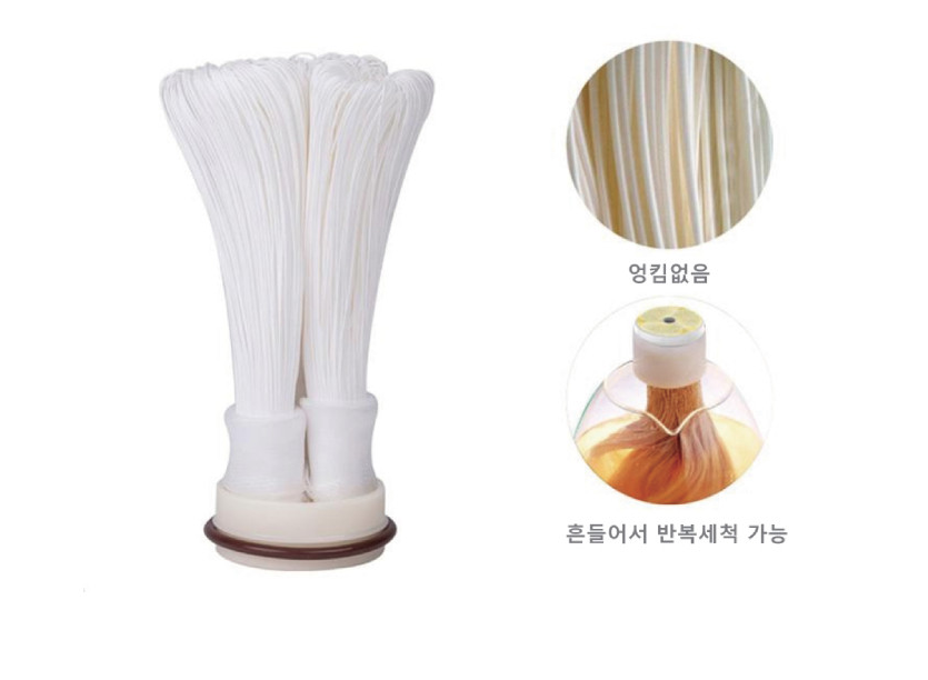 PVDF재질로 위와같이 실타래 처럼 생겼습니다. 미세한 기공이 뚫려있어 이를 통과하는 물만 정수되는 구조 입니다.