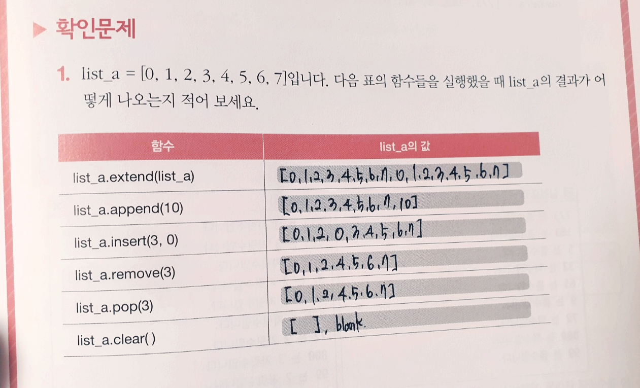 -. extend(list) 리스트 뒤에 새로운 리스트의 요소 추가 (예: list_a.extend(["a", "b", "c"])