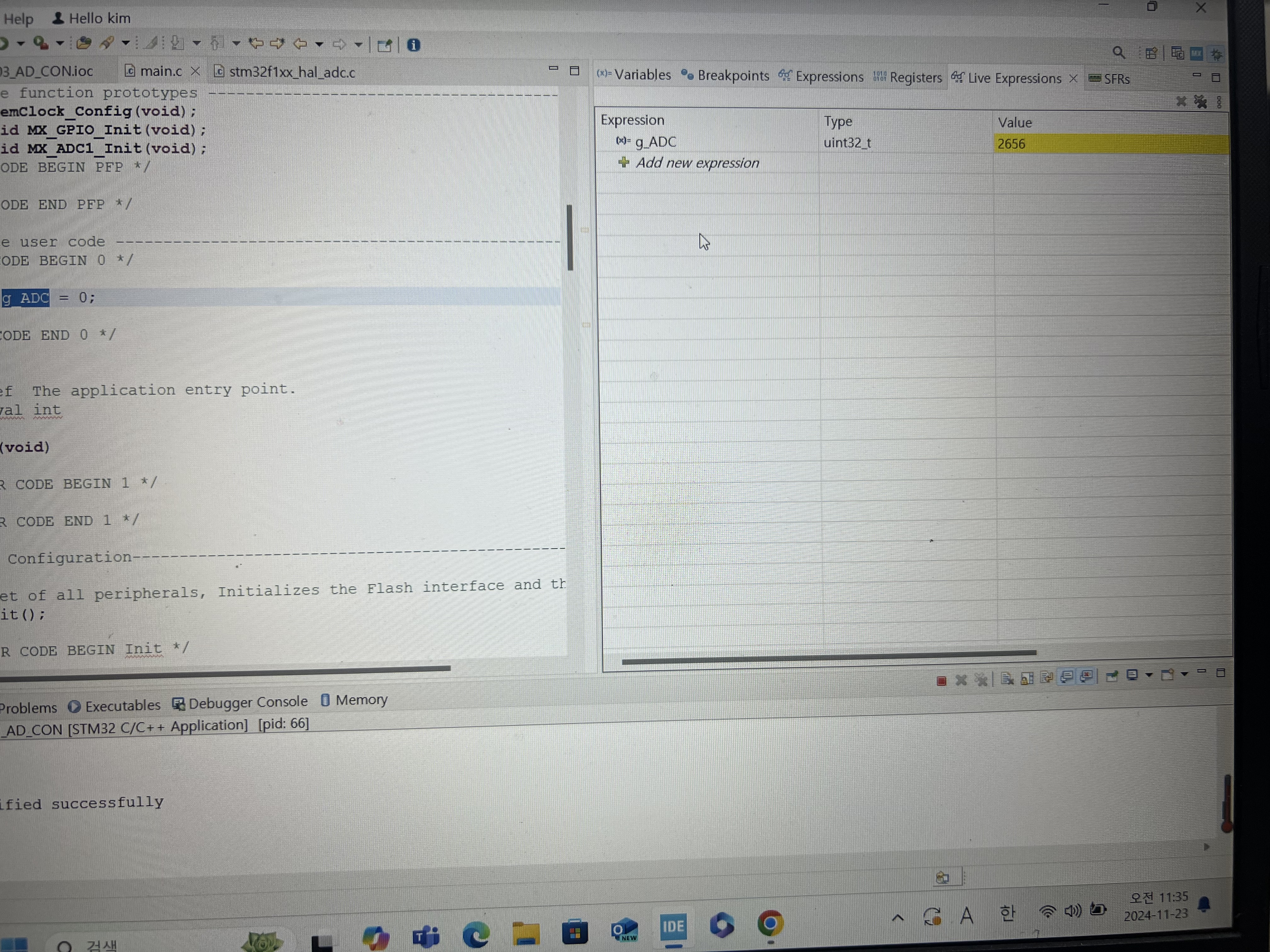 STM32 전용 에디터인 CubeIDE를 이용하면 라이브 기능을 이용하여 원하는 변수의 변화값을 모니터링 할 수 있습니다.