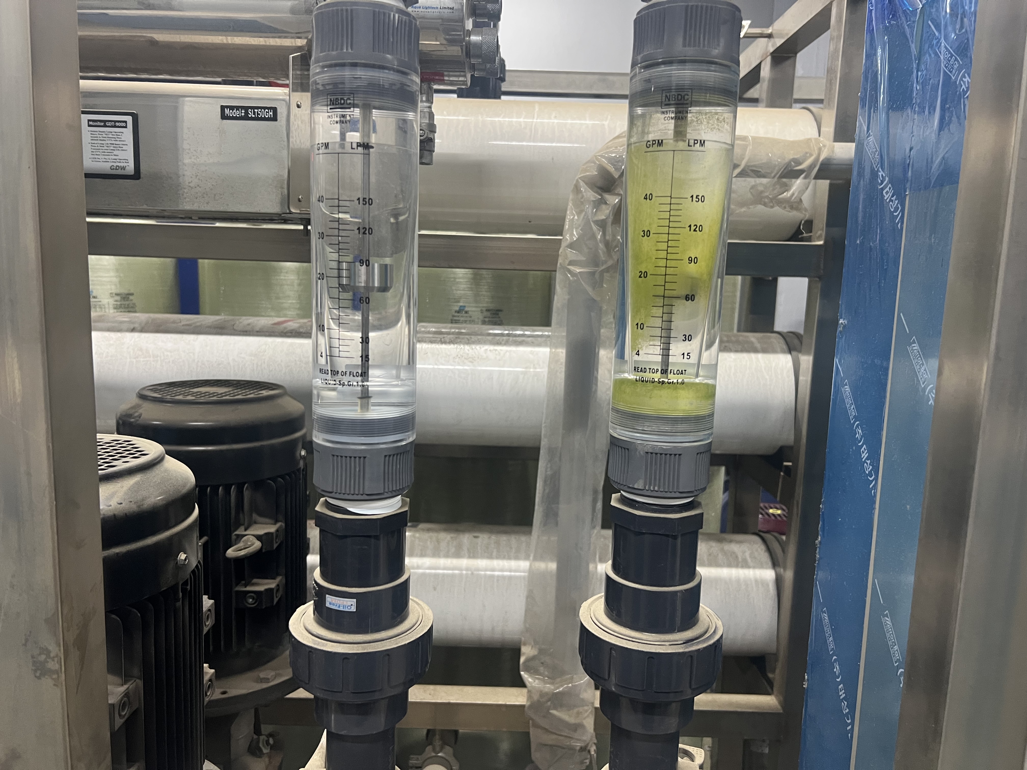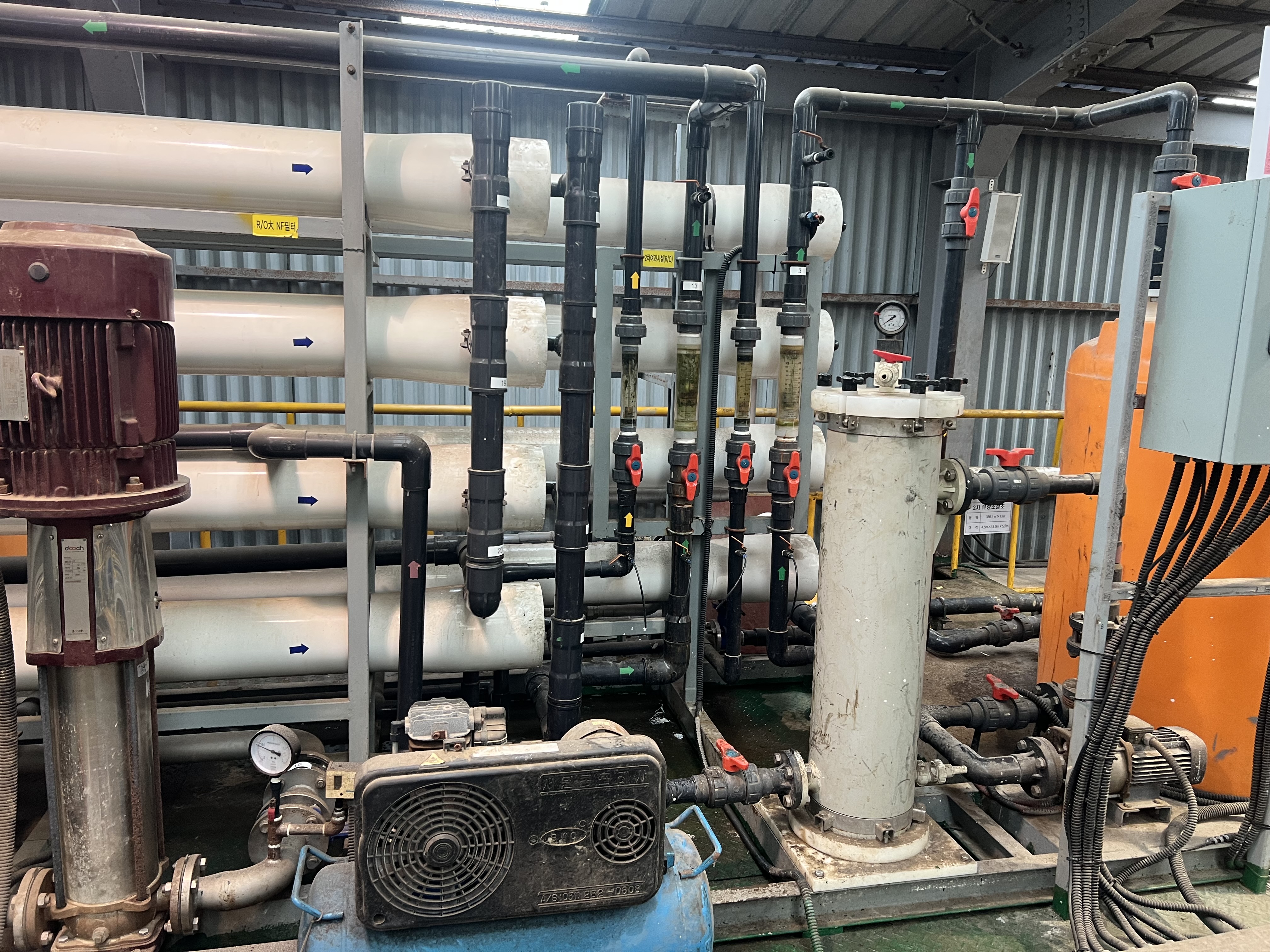 전기판넬을 수정하고 정상적인 유량이 나오고 정상작동을 하고 있는 설비의 사진입니다.
