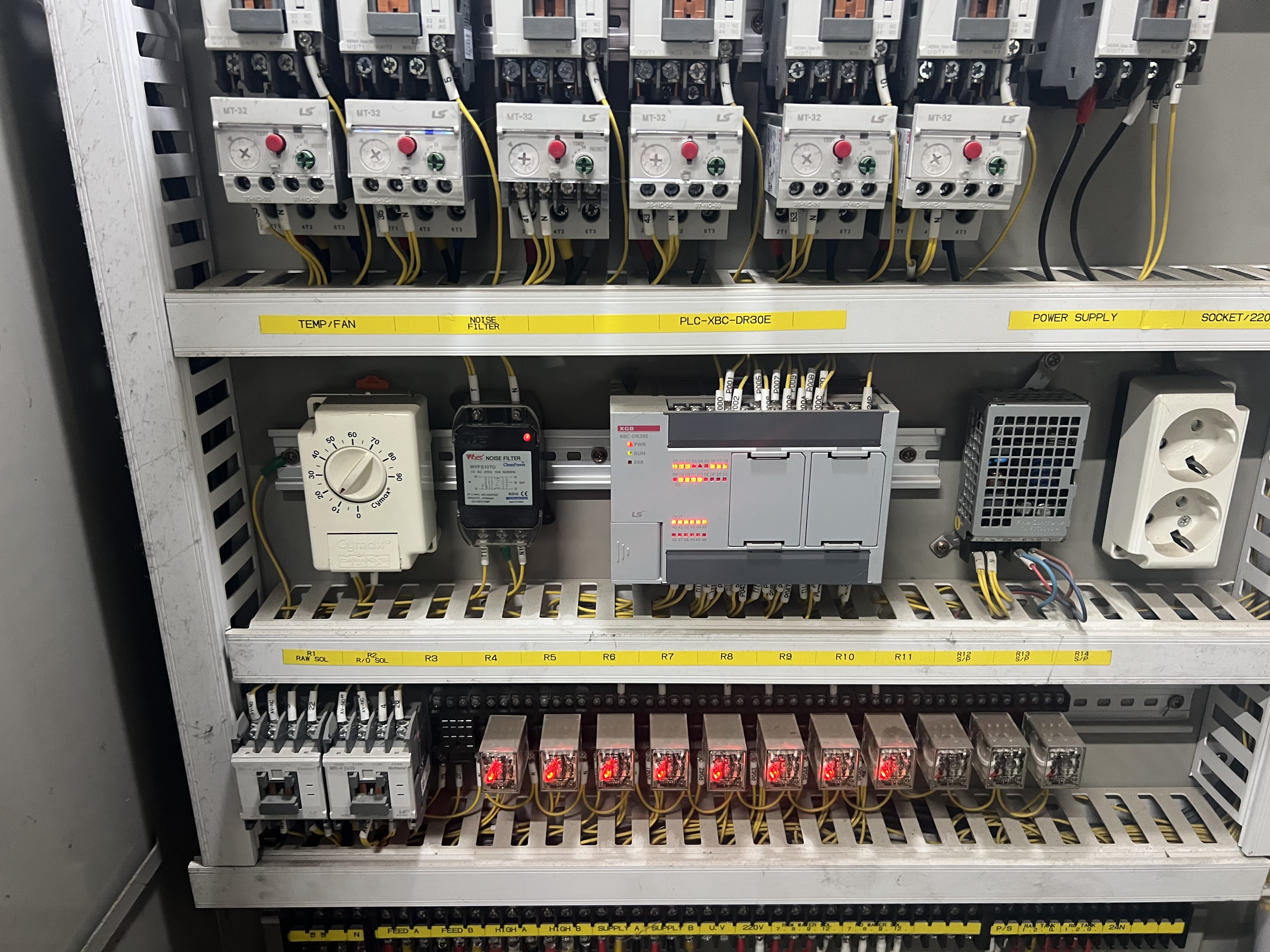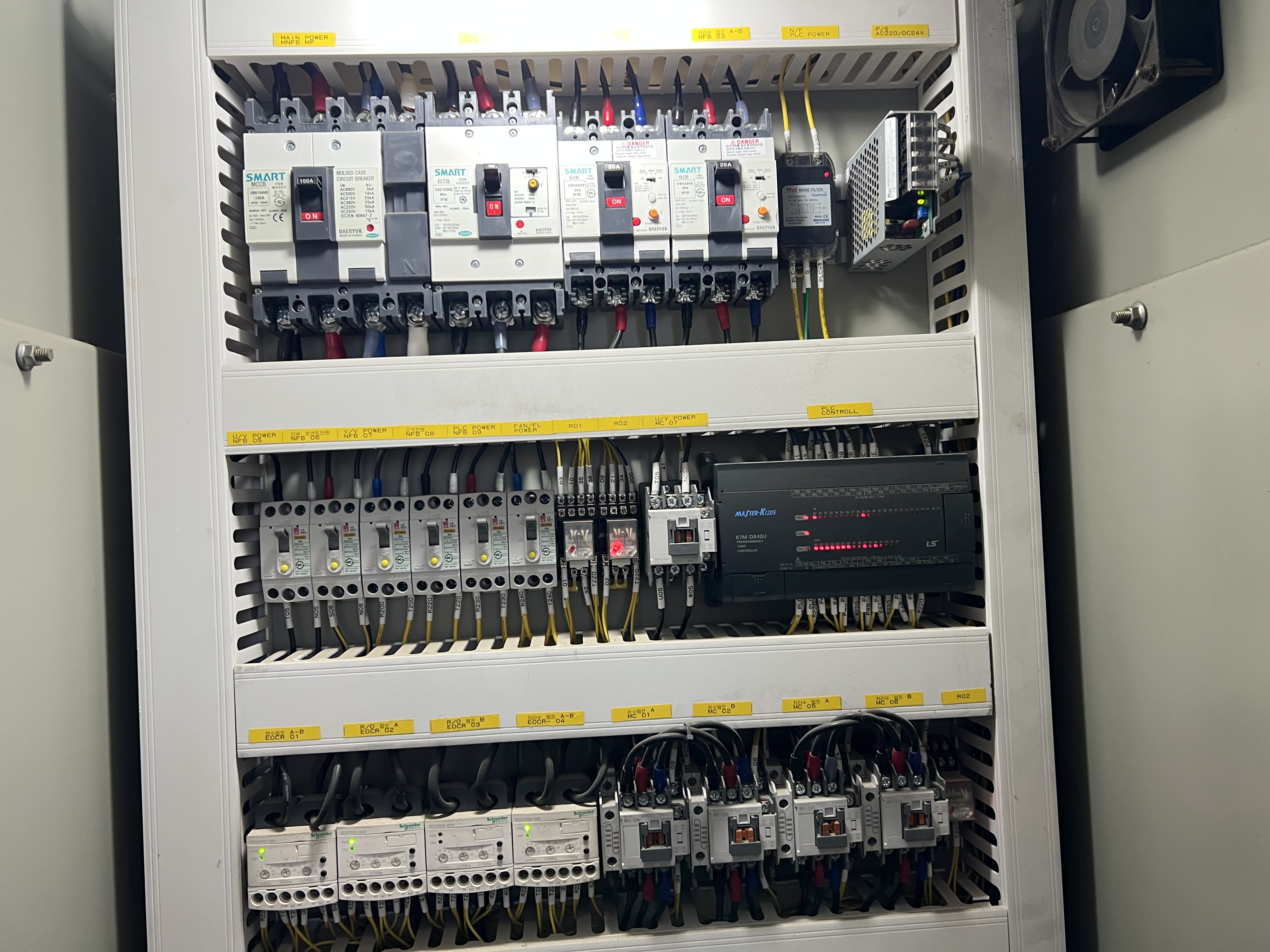 전체적으로 보면 마그네틱과 릴레이, PLC로 이루어진 가장 일반적인 판넬입니다.