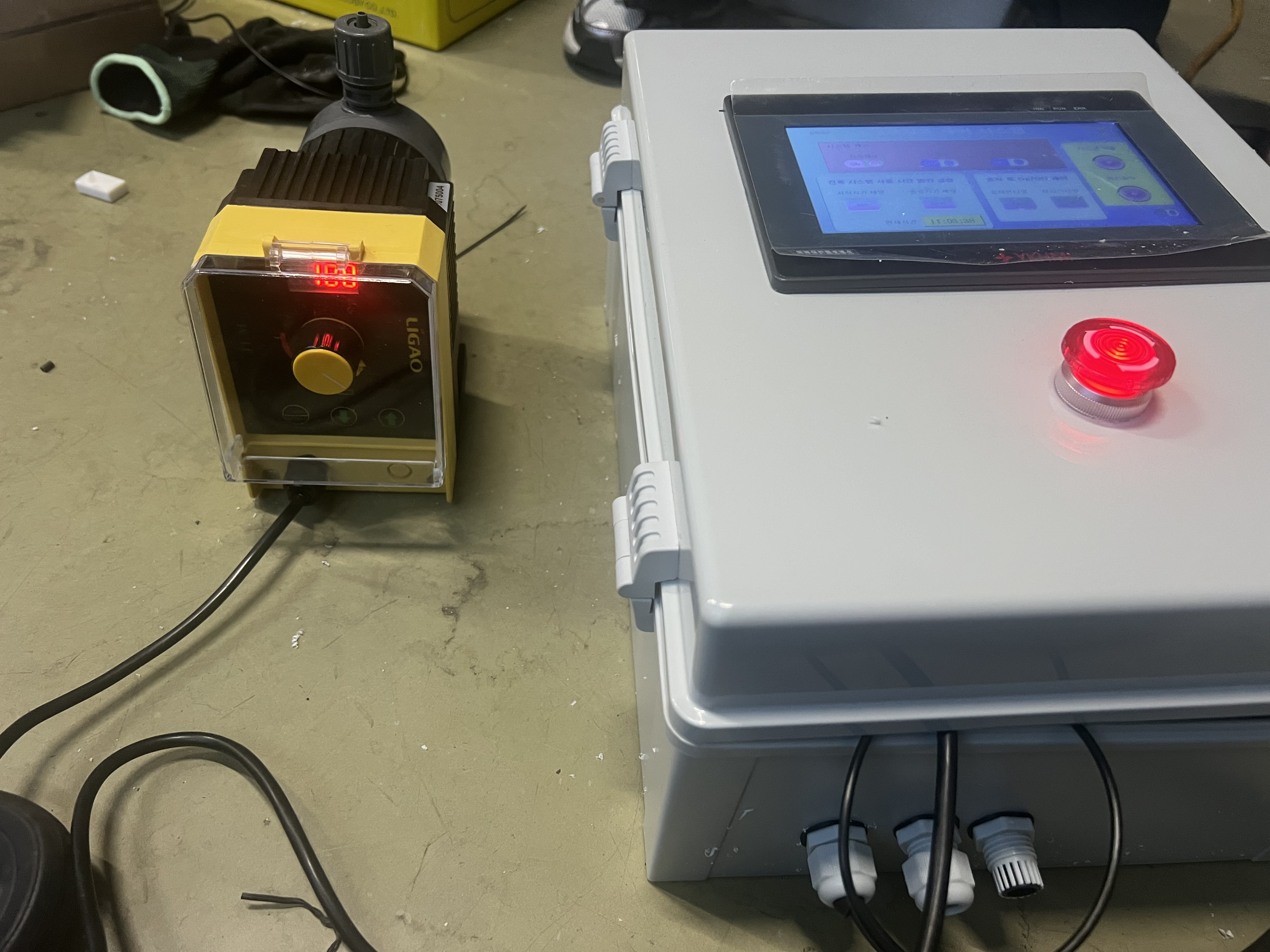 정량펌프를 연결하여 마지막 최종 점검을 하였습니다.