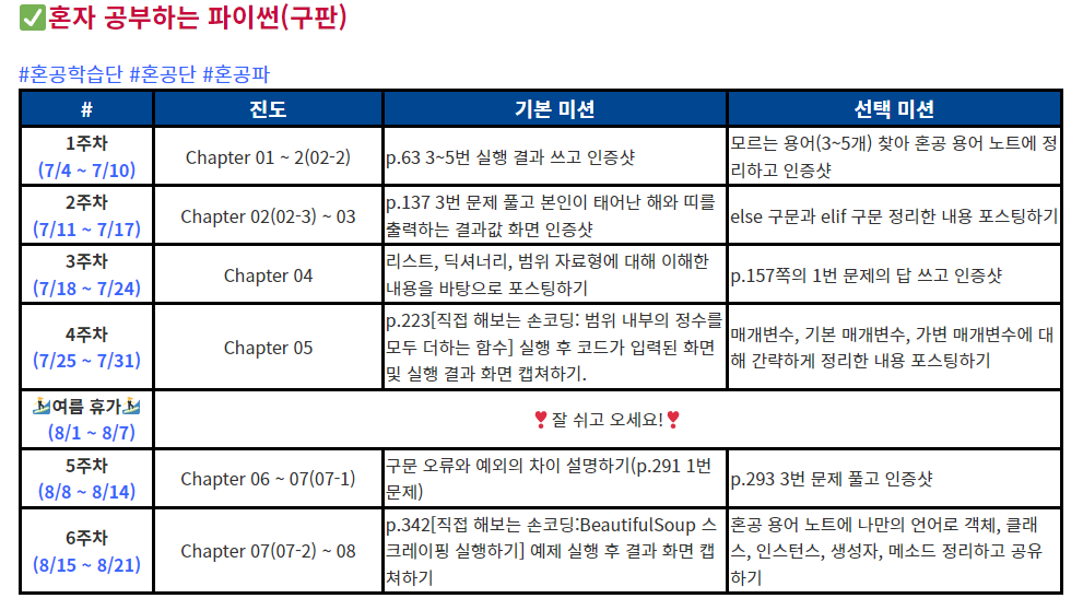 | 혼공학습단 8기 파이썬 혼공 리뷰 (0) | 2022.08.21 |